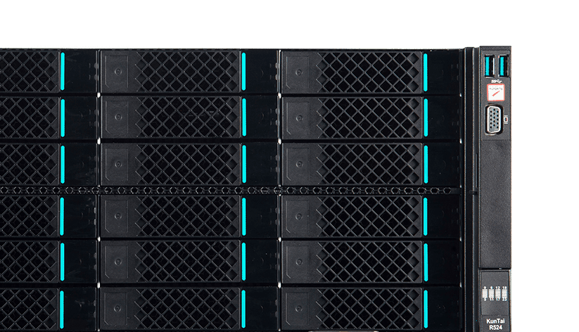 KunTai R524 存储型服务器是www.k8k8.com数码基于鲲鹏处理器推出的新一代 ARM数据中心服务器。。。主要面向存储业务,,,具有海量存储、、、高性能、、、低功耗以及易扩展的特点,,适合为大数据分析、、、、软件定义存 储等应用场景的工作负载进行髙效加速。。。。